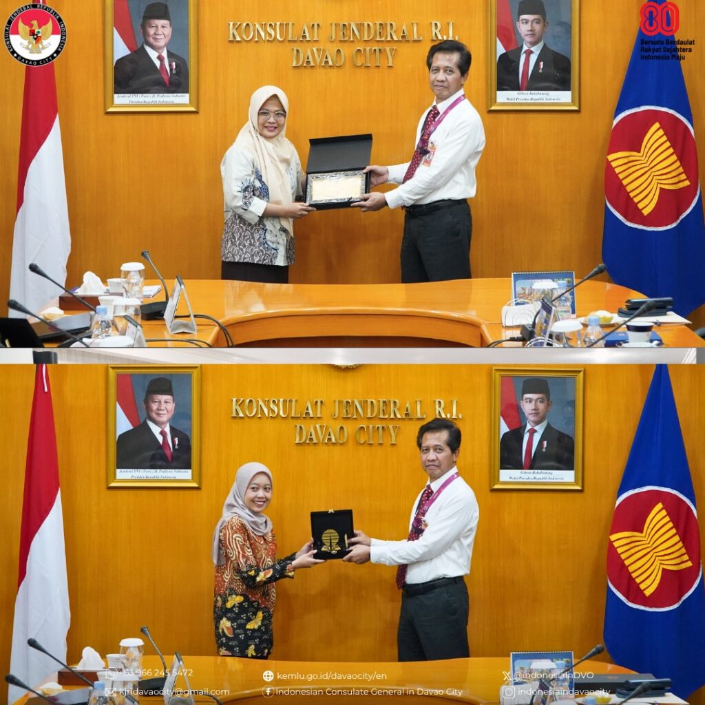 The Consul General of the Republic of Indonesia in Davao City received a Courtesy Call from two lecturers of the Postgraduate School of Universitas Terbuka (UT), who will carry out an international Community Service (PkM) program themed βStrengthening Psychosocial Education and Revitalization of Indonesian Descendant Culture in Davao Cityβ which took place in the Conference Room on 28 October 2025.
