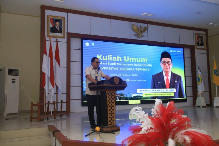 Weda, 28 Februari 2026 – Universitas Terbuka (UT) Ternate melaksanakan kegiatan Orientasi Studi Mahasiswa Baru (OSMB) dan Pelatihan Keterampilan Belajar Jarak Jauh (PKBJJ) bertempat di Aula Hi Salahuddin, Kantor Bupati Halmahera Tengah, Sabtu (18/02/2026). Kegiatan ini merupakan bagian dari layanan akademik UT pada Masa Registrasi 2026.1 (2025/2026 Genap) untuk membekali mahasiswa baru dengan pemahaman sistem pembelajaran jarak jauh.
